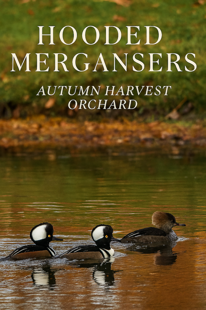 Enjoy a peaceful glimpse of Hooded Merganser ducks gliding across the pond at Autumn Harvest…